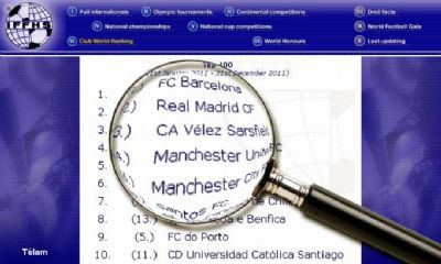 | Vélez, que en 2011 fue campeón del torneo Clausura y semifinalista en la Copa Libertadores (lo eliminó Peñarol de Uruguay) y la Copa Sudamericana (cayó ante Liga de Ecuador), totalizó 271 puntos. Barcelona, con Lionel Messi como estandarte, fue el mejor del mundo con 367 puntos, seguido por Real Madrid, de Cristiano Ronaldo, con 312. El equipo argentino mejor ubicado después de Vélez es Independiente, 40mo. con 162 puntos, mientras que Boca Juniors, actual campeón argentino, está 149no. con 104. Los 10 mejores del mundo en 2011, según la IFHHS, y los argentinos clasificados son los siguientes: 1) Barcelona (España) 367,0 2) Real Madrid CF (España) 312,0 3) Vélez Sarsfield (Argentina) 271,0 4) Manchester United (Inglaterra) 270,0 5) Manchester City (Inglaterra) 239,0 6) Santos FC (Brasil) 238,0 7) Universidad de Chile (Chile) 235,5 8) Benfica (Portugal) 235,0 9) Porto (Portugal) 231,0 10) Universidad Católica (Chile) 230,0 |