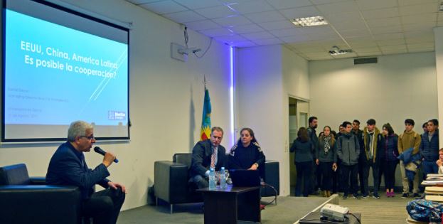 El dÃa miércoles 21 de agosto se desarrolló la Charla Inaugural del segundo cuatrimestre a cargo de Daniel P. Erikson "EEUU, China y America: es posible la cooperación". También estuvo presente MarÃa Florencia Castro, Subsecretaria de PolÃticas Docentes y Gestión Territorial y el rector de la Casa de Estudios, Ing. Daniel Galli. |