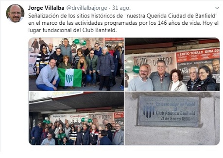 "Es un viejo anhelo el que hoy pudimos concretar, comenzar a se帽alizar los sitios hist贸ricos de nuestra Ciudad, y lo hacemos en primera instancia con el lugar donde se dio vida al Club Atl茅tico Banfield", se帽al贸 Jorge Villalba, en representaci贸n del Centro Cultural Mariano Moreno, quien continuo en su relato "es una forma de mantener viva la Cultura de nuestro pueblo".