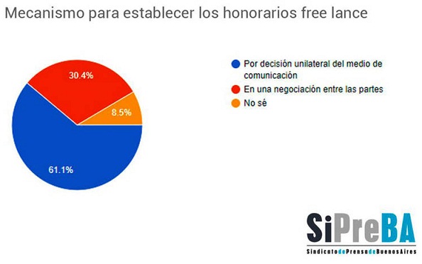 A causa del bajo sueldo y la imposibilidad de que alcanzar a cubrir las necesidades básicas, según el informe, ocho de cada diez trabajadoras y trabajadores free lance declararon colaborar para entre uno y tres medios, y que el 11% trabajan para entre cuatro y cinco. A su vez, el 58% afirmó dedicarse además en otro rubro porque lo que ganan en prensa no les alcanza para vivir.
