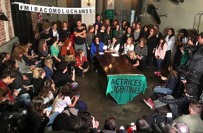 La conferencia comenz贸 con la lectura de un comunicado por parte de Actrices Argentinas. "Somos ignoradas al denunciar los abusos, hasta el punto de pagar el precio de callar y someternos. Nos unimos, nos organizamos y pudimos decir basta. El tiempo de impunidad para los abusadores debe terminar".