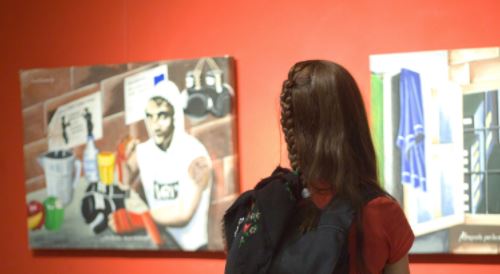 GalerÃa Pasillo nació en el pasillo central del Centro Universitario San MartÃn (CUSAM) para desplazar la lógica de la cárcel, que separa e invisibiliza. Se pensó como un espacio de intercambio entre la Universidad y los proyectos culturales y educativos de José L. Suárez orientados a la transformación social a través del arte. El lunes 7 de octubre, la GalerÃa llegó al Campus Miguelete con "La Ranchada", una muestra del estudiante de SociologÃa en el CUSAM Juan Valenzuela. Letrista y fileteador de oficio, Valenzuela se formó a sà mismo como artista plástico en la Unidad Penal 47, y también formó a compañeros en un taller de dibujo auto gestionado. Hoy trabaja en su tesis de licenciatura, en la que analiza los talleres artÃsticos como dispositivos pedagógicos en contexto de encierro. "La ranchada es la celda. Si hacés una buena ranchada tenés un lugar donde sentirte seguro y donde podés expresar el arte que tenés. Todos estamos cruzados por el arte", dijo Valenzuela en la inauguración de su muestra. "No sabÃa cómo expresar lo que pasaba ahà adentro para que la gente de afuera recibiera el mensaje que yo querÃa dar. Con el tiempo me di cuenta cuánto me han dado mis cuadros, y que todos tenemos algo de artistas, solo tenemos que intentar sacarlo". De la inauguración participaron Laura Malosetti Costa, decana del Instituto de Artes Mauricio Kagel (IAMK); Silvia Dolinko, coordinadora general del IAMK; Marisa Baldasarre, secretaria de Extensión del Instituto de Altos Estudios Sociales (IDAES); y Marcos Perearnau, coordinador de la Diplomatura en Arte y Gestión Cultural del CUSAM. "En las pinturas de Juan nada está allà porque sÃ. El mate, los puchos, una manzana mordida, el buzo Adidas, los tatuajes, el código civil, la sociologÃa de Weber o la perspectiva dramática de los pasillos del CUSAM rememoran las lecciones de arte del Renacimiento y el Expresionismo, pero son además mojones para contar las historias y los sentimientos que se despliegan dentro del penal. La vida carcelaria, la sociologÃa, la pintura y la historia del arte se dan cita en esta obra", dijo Baldasarre sobre los cuadros de Valenzuela. |
