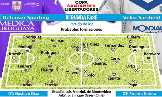 El encuentro será el primero de la fase de grupos de la Libertadores, que tiene como actual campeón al Santos, de Brasil, encuadrado en la Zona 1. Para Vélez será el primer compromiso oficial del año y el comienzo de uno de los dos objetivos planteados para este semestre junto al torneo Clausura, que comenzará el fin de semana. Vélez sumó al ex delantero de Arsenal Mauro Obolo y al mediocampista ofensivo Federico Insúa, quien proviene del fútbol turco, y está cerca de cerrar la contratación del atacante Lucas Pratto, quien llegará a préstamo desde el Genoa italiano y únicamente podrá jugar la Copa. Por su parte, Defensor Sporting conducido por Gustavo DÃaz, actual subcampeón del torneo uruguayo, también tendrá su estreno oficial en el año. A su vez, será el regreso del conjunto "violeta" al torneo desde su última participación en 2009 cuando llegó hasta cuartos de final y quedó eliminado por Estudiantes de La Plata, el campeón de aquella edición. Una de las piezas clave del equipo uruguayo es el argentino Néstor Moiraghi, defensor surgido de las inferiores de Lanús y con pasado en Temperley y Douglas Haig de Pergamino. En tanto, el Grupo 7 se completa con Deportivo Quito de Ecuador y Chivas de Guadalajara, México, que también se enfrentarán esta noche desde las 23.15. = Probables formaciones = Defensor Sporting: Yonatan Irrazábal; Ramón Arias, Robert Herrera, Néstor Moiraghi y Diego RodrÃguez; Diego Ferreira, Andrés Fleurquin, Diego RodrÃguez y Brahian Alemán; Nicolás Olivera e Ignacio Risso. DT: Gustavo DÃaz. Vélez Sarsfield: Marcelo Barovero; Fabián Cubero, Sebastián DomÃnguez, Fernando Ortiz y Emiliano Papa; Augusto Fernández, Francisco Cerro y VÃctor Zapata; David RamÃrez; Juan Manuel MartÃnez y Mauro Obolo. DT: Ricardo Gareca. Arbitro: Enrique Osses (Chile). Estadio: Luis Franzini, de Montevideo. Hora: 18.45 (Fox Sports). |