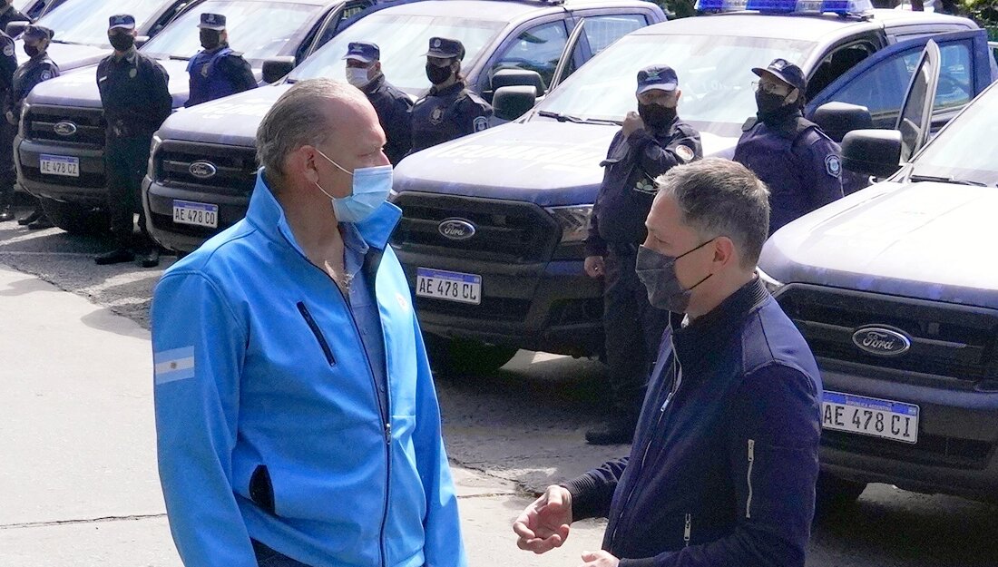 "Hoy estoy con el ministro Berni en una jornada de trabajo para seguir proyectando planes de acci贸n con el fin de fortalecer la seguridad en nuestro distrito. Con fondos municipales adquirimos 20 patrulleros m谩s para la Guardia Urbana, y previamente, con apoyo nacional y provincial compramos 60 patrulleros y renovamos la flota municipal de patrulleros. A eso se suman 500 c谩maras, 63 domos y seguimos haciendo inversiones en infraestructura, capacitaci贸n para el personal y obras para mejorar la vida de todos y todas las vecinas", destac贸 Fernando Gray.