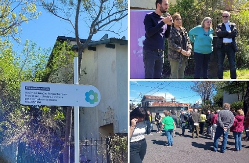 El acto y la señalización con un cartel evocativo se realizó a unos pocos metros de la casona donde vivió el matrimonio Schjaer y sus siete hijos e hijas en Hurlingham, un lugar al que la familia siempre recordó como "la casa de nuestros años felices".