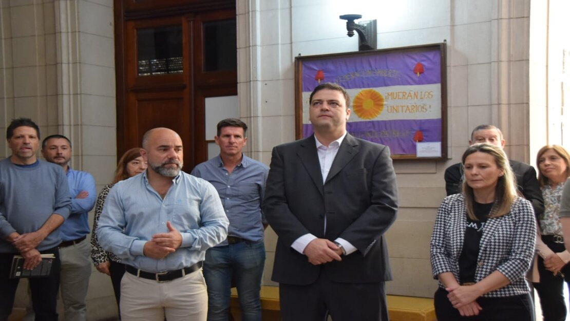 All铆, tras la recepci贸n de autoridades e invitados, y las oraciones religiosas, se procedi贸 a la colocaci贸n de una ofrenda en el busto del fundador, y posteriormente dejaron sus conceptos el presidente del H. Concejo Deliberante, Horacio Baglietto y el Intendente Municipal de Nueve de Julio, Mariano Barroso, quien estuvo acompa帽ado en la oportunidad por la Jefa de Gabinete, Mar铆a Jos茅 Gentile; el secretario de Gobierno, V铆ctor Altare, funcionarios del Gabinete e invitados especiales.