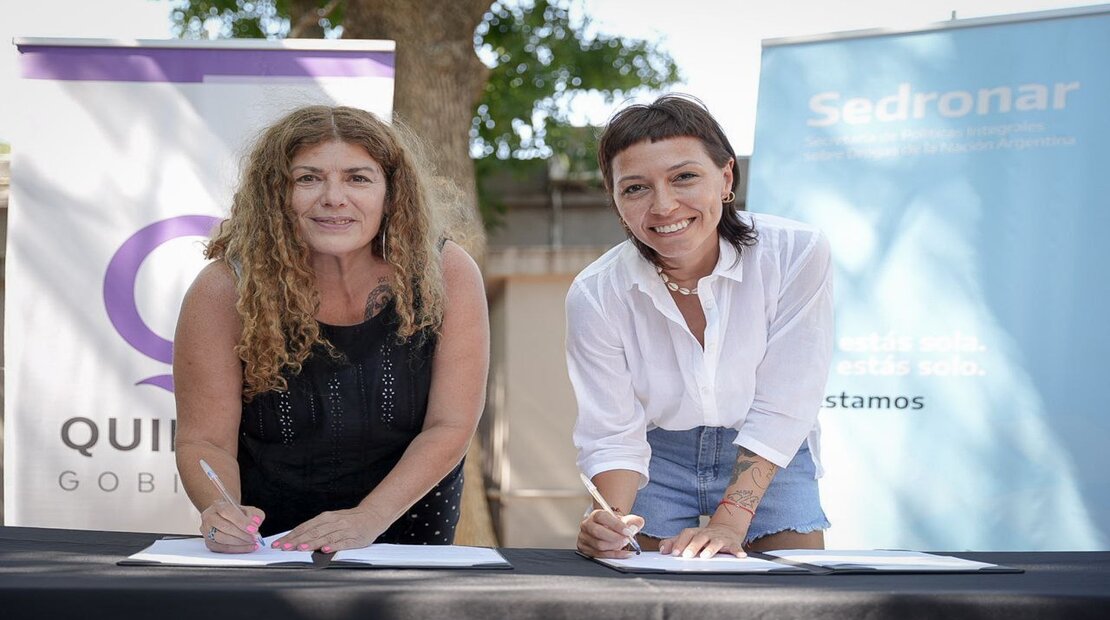 La intendenta de Quilmes, Mayra Mendoza, y la secretaria de Pol铆ticas Integrales sobre Drogas de la Naci贸n (SEDRONAR), Gabriela Torres, firmaron un convenio que estipula la asistencia financiera por parte del organismo nacional al Municipio para el fortalecimiento de los Dispositivos Territoriales Comunitarios (DTC), en el marco del Programa Federal de Articulaci贸n en Materia de Consumos Problem谩ticos.