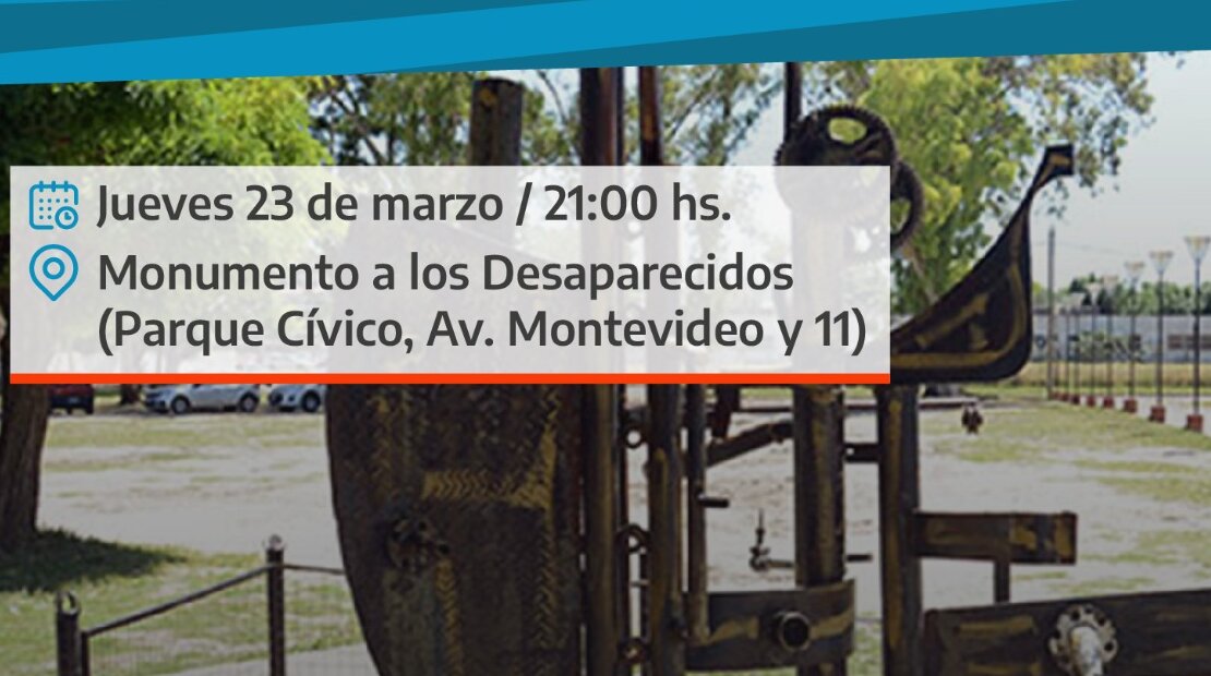 El acto, que se concretará el próximo jueves 23 de marzo, a las 21:00 horas, tendrá lugar en el Monumento a los Desaparecidos, emplazado en el Parque Cívico de la ciudad en Av. Montevideo y 11.