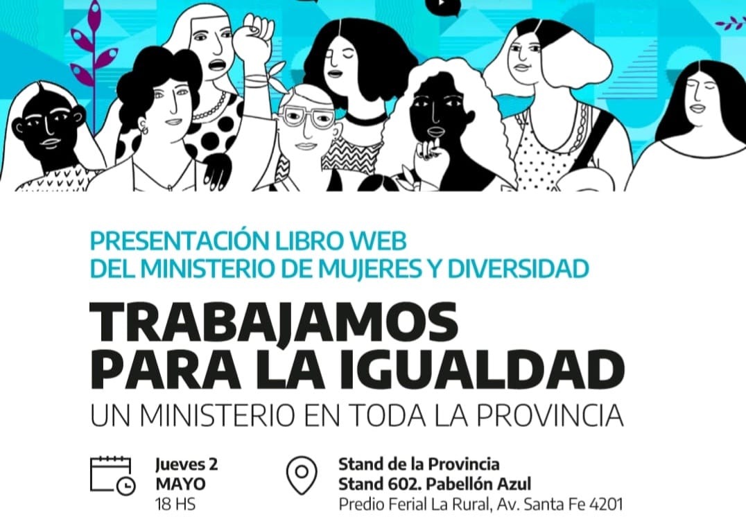 El Ministerio de Mujeres y Diversidad de la provincia de Buenos Aires presenta su libro web Trabajamos para la Igualdad, el próximo jueves 2 de mayo a las 18 h en la 48.a Feria internacional del libro de Buenos Aires.