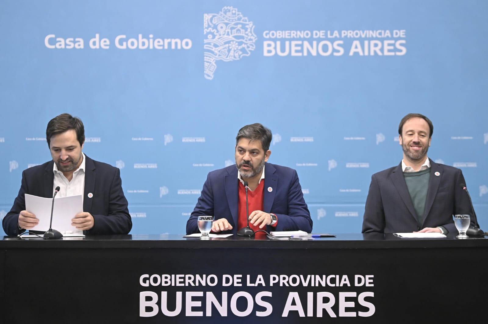 El ministro de Gobierno de la provincia de Buenos Aires, Carlos Bianco, encabez贸 este lunes una conferencia de prensa en el Sal贸n Dorado de la Gobernaci贸n junto al ministro de Salud, Nicol谩s Kreplak, y al ministro de Econom铆a, Pablo L贸pez. Se trata de la primera de una serie de conferencias que se realizar谩n todos los lunes por la ma帽ana en torno a temas de la agenda de gobierno de la Provincia, en las que Bianco estar谩 acompa帽ado por ministros del gabinete bonaerense.
