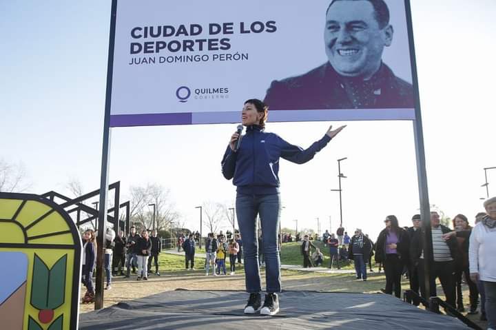 La intendenta de Quilmes y presidenta del Partido Justicialista (PJ) local, Mayra Mendoza, resaltó que “hay que recordar, como decÃa Néstor Kirchner, a Perón y a Eva cuando se gobierna y durante todos y cada uno de los dÃas de nuestra gestiónâ€, al encabezar este martes en San Francisco Solano el emotivo acto de imposición de nombre del Polideportivo Ciudad de los Deportes, como “Juan Domingo Perónâ€, al conmemorarse 50 años del fallecimiento del ex Presidente.
