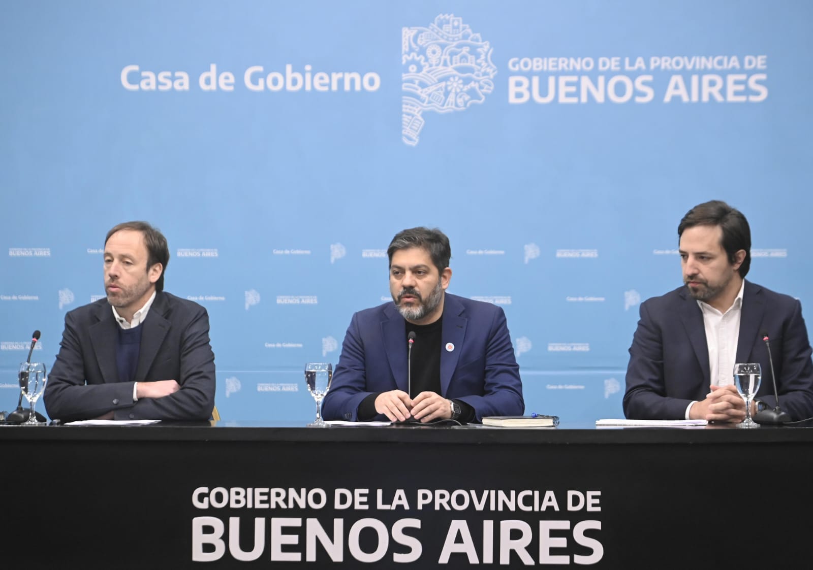 El ministro de Gobierno bonaerense, Carlos Bianco, brind贸 este lunes una nueva conferencia de prensa en el Sal贸n Dorado de la Gobernaci贸n junto a los ministros de Econom铆a, Pablo L贸pez, y de Salud, Nicol谩s Kreplak. Entre otros anuncios, los funcionarios dieron a conocer los detalles del acuerdo paritario alcanzado con los gremios estatales de la provincia de Buenos Aires y presentaron medidas de asistencia y fortalecimiento en materia sanitaria.