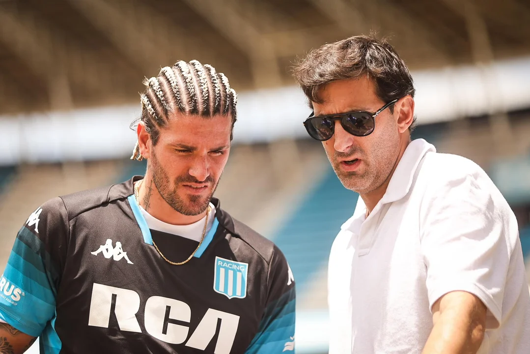 El surgido en Tita Mattiussi pos贸 con Francesca y Bautista en el campo de juego de Racing. Posteriormente, se sac贸 una foto con el actual presidente Diego Milito y el director deportivo Sebasti谩n Saja.