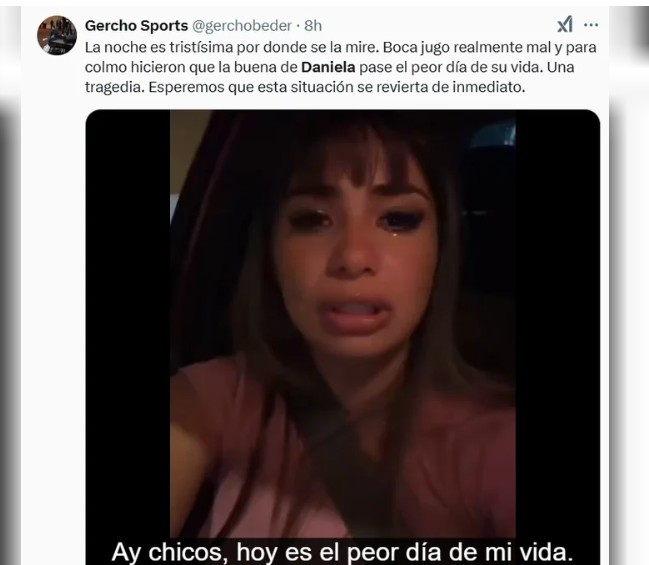 Un usuario se帽al贸: 鈥淟a noche es trist铆sima por donde se la mire. Boca jugo realmente mal y para colmo hicieron que la buena de Daniela pase el peor d铆a de su vida. Una tragedia. Esperemos que esta situaci贸n se revierta de inmediato鈥.(NA)