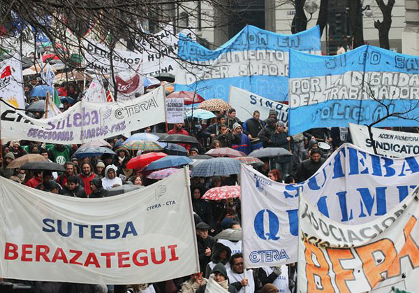 Mientras tanto, el Frente Gremial Docente volverá al paro hoy en las escuelas públicas y privadas de la provincia y anticipan que la medida tendrá una adhesión "contundente". También lo harán los maestros de Udocba, gremio minoritario del sector enrolado en la CGT, que inició hoy una huelga de 48 horas con acatamiento del "85 por ciento", según la entidad.
