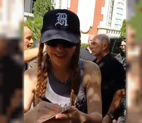 En medio de una ola de calor que super贸 los 40掳 en la Ciudad de Buenos Aires, la int茅rprete decidi贸 acercarse a los cientos de seguidores que aguardaban por un aut贸grafo, antes de partir al Palacio Sans Souci.
