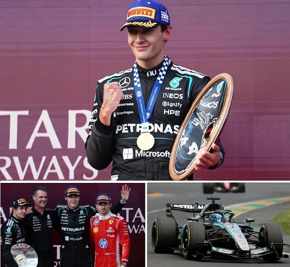 George Russell de Mercedes ganó un emocionante Gran Premio de Australia en la apertura de la temporada de Fórmula 1 , seguido por su compañero de equipo Kimi Antonelli, luego de que una doble parada en boxes bajo el coche de seguridad virtual superara una salida increíblemente rápida de Ferrari.