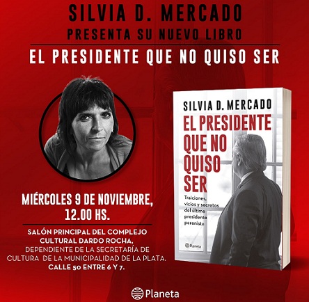 Silvia Mercado presenta el libro "El Presidente que no quiso ser" en La PlataSer谩 este mi茅rcoles a las 12 en el Pasaje Dardo Rocha. El libro cuenta la intimidad del actual presidente Alberto Fern谩ndez |