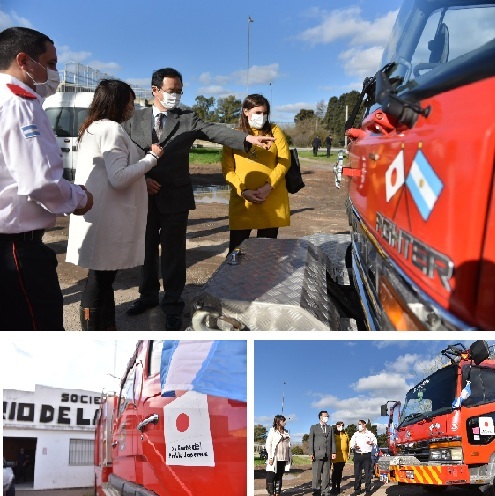 La Plata: El Municipio participó de la entrega de un nuevo camión autobomba a los bomberos de El Peligro donada por la Embajada de Japón