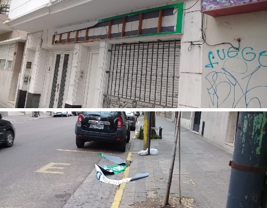 El espacio de Randazzo en la ciudad confirmó que fue destruida la marquesina del local partidario ubicado en el centro de la ciudad y hablaron de "campaña sucia".