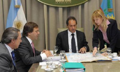 El gobernador Daniel Scioli firmó hoy la promulgación de la Ley que habilita el mecanismo de financiación para convertir en autovía a la Ruta Provincial 6, en el marco de la reunión de gabinete que encabezó en la Casa de Gobierno con una variedad de temas de gestión. "Vamos hacia la conexión de la hidrovía Zárate-Campana con el puerto de contenedores La Plata-Berisso-Ensenada que se inaugurará en abril próximo, unos 180 kilómetros, 22 municipios, como nuevo anillo de circunvalación, como gran corredor que atraerá inversiones y la instalación de nuevas industrias", enfatizó Scioli. Destacó especialmente el trabajo que viene cumpliendo la ministra de Infraestructura, Cristina Álvarez Rodríguez, que "lleva adelante la responsabilidad de articular todas estas obras, los desagües pluviales, cordón cuneta, asfalto, viviendas". "Y fundamentalmente estos nuevos anillos de circunvalación, que logramos plantear la forma de financiar esta obra de mil cien millones de pesos, en la convicción que va a contribuir a esta idea de la descentralización, es decir, tener un territorio que vaya corrigiendo las asimetrías productivas y demográficas", apuntó. La reunión de gabinete, que se extendió por dos horas, incluyó informes del jefe de Gabinete, Alberto Pérez; los ministros Alejandro Collia (Salud), Mario Oporto (Educación), Eduardo Camaño (Gobierno), Baldomero Alvarez de Olivera (Desarrollo Social) y Alejandro Arlía (Economía). Tuvo también un capítulo sobre seguridad ciudadana a cargo del ministro de Justicia y Seguridad, Ricardo Casal, focalizado en el nuevo destacamento policial inaugurado hoy en Florencio Varela y la entrega de motos para patrullaje en ese distrito, más lineamientos del próximo "Operativo Sol" en la Costa Atlántica. |