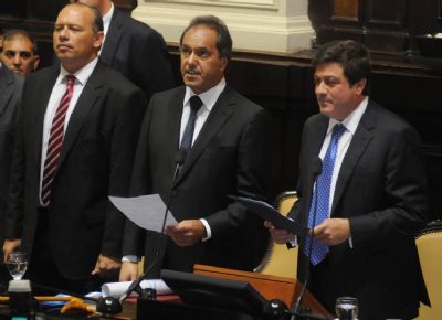 El gobernador Daniel Scioli, y su vice Gabriel Mariotto, juraron en la Cámara alta bonaerense un nuevo mandato al frente del Poder Ejecutivo.