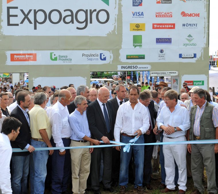 El gobernador Daniel Scioli inauguró hoy Expoagro 2012, junto con su par de Santa Fe; Antonio Bonfatti; el intendente local, Mario Meoni; el ministro de Asuntos Agrarios, Gustavo Arrieta; el presidente del Banco Provincia, Gustavo Marangoni; el titular del Grupo Banco Provincia, Santiago Montoya, y el gerente general de la muestra, Eugenio Schlossberg. "En la articulación del campo, la industria y el conocimiento está la clave del crecimiento del empleo hacia el futuro" aseveró Scioli en conferencia de prensa. Estuvieron presentes también los intendentes Sergio Buil (Rivadavia); Eduardo Bucca (BolÃvar); Ricardo Casi (Colón); Esteban Hernando (Daireaux); Enrique Tkacik (Hipólito Irigoyen); Walter Battistella (9 de Julio); MartÃn Caso(Rojas); y Fabián Zorzano (Coronel Dorrego). También el vicepresidente ejecutivo del Grupo Banco Provincia, Nicolás Scioli; el titular de FOGABA, Leonardo Rial; el ex gobernador de Santa Fe, Hermes Binner; y los dirigentes agropecuarios Eduardo Buzzi, Hugo Biolcatti y Mario LlambÃas. JC |