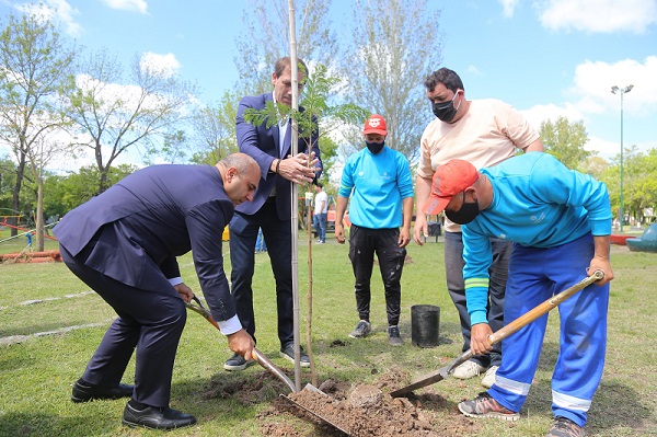 El intendente de La Plata, Julio Garro, junto con el Embajador de Azerbaiyán en Argentina, Rashad Aslanov, participaron hoy de la plantación de cien nuevos árboles que fueron donados por la Embajada a la ciudad. Además, estrecharon lazos y formalizaron el vÃnculo para futuros proyectos. Los ejemplares donados por la Embajada de Azerbaiyán fueron plantados este lunes en la Plaza Almafuerte de Gonnet (498 entre 26 y 27), y sobre la calle 27, la 498 y en extensión al finalizar la calle 26. Además, fue colocada una placa conmemorativa por el hecho. Dicha donación se dio en el marco del 30º Aniversario de la Restauración de la Independencia de la República de Azerbaiyán; siendo el Municipio de La Plata el único elegido para esta acción. "Estamos muy agradecidos por esta donación que se realiza en una fecha especial para la República de Azerbaiyán. Es un orgullo que nos elijan como ciudad para poder llevar adelante esta acción", expresó el intendente Garro. Asimismo, Garro comentó que "elegimos esta plaza que recuerda a uno de los Cinco Sabios que representan a nuestra ciudad, particularmente a Pedro Bonifacio Palacios, conocido como 'Almafuerte', para establecer como punto de encuentro este lugar donde nuestras culturas confluyan, dialoguen, se oxigenen, a través de la vida que se desprende del variado arbolado". Cabe resaltar que, en base a los ejemplares donados y a las caracterÃsticas del espacio, los nuevos árboles plantados son Ibirá-puitá, Tipuana tipu (Tipa), Tabebuia avellanedae (Lapacho rosado), Jacarandá mimosifolia y Palo borracho rosado. Acompañado por el Secretario de Espacios Públicos, José Etchart; y la Asesora en Relaciones Internacionales e Institucionales del Municipio, Rosario Castagnet; el intendente y el Embajador estrecharon lazos y formalizaron el vÃnculo para futuros proyectos. |