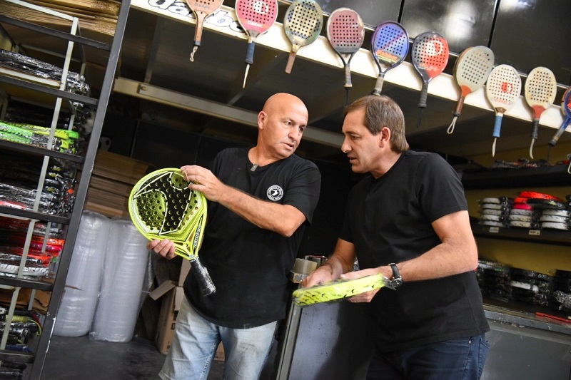 El intendente platense estuvo en la f谩brica Dabber de paletas de p谩del, que eligi贸 seguir fabricando en la ciudad pese a ofertas del exterior. "El futuro es de la mano de los que invierten", dijo Garro.