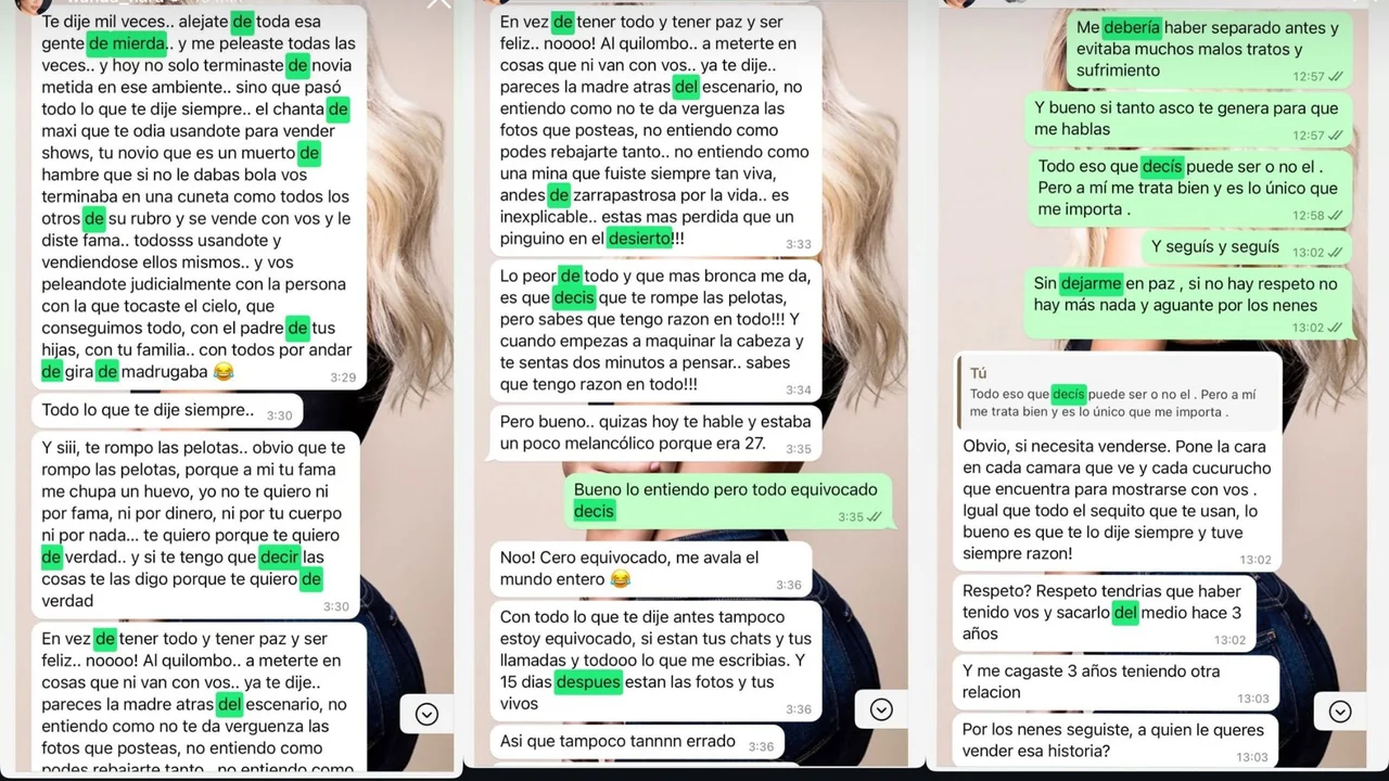 “Pasó todo lo que te dije siempre.. el chanta de Maxi que te odia usándote para vender shows, tu novio que es un muerto de hambre que si no le dabas bola vos terminaba en una cuneta como todos los otros de su rubro y se vende con vos y le diste fama.. todosss usandote y vendiéndose ellos mismos.. y vos peleándote judicialmente con la persona con la que tocaste el cielo, que conseguimos todo, con el padre de tus hijas, con tu familia.. con todos por andar de gira de madrugada”, sostuvo Icardi.