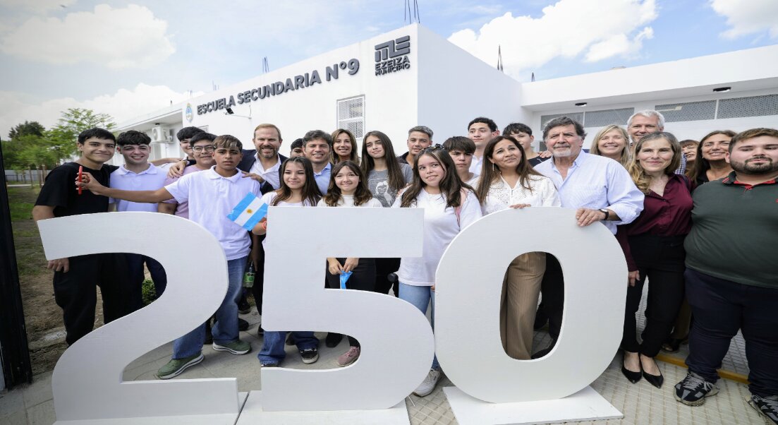 El gobernador de la provincia de Buenos Aires, Axel Kicillof, encabez贸 este jueves el acto de inauguraci贸n del edificio educativo N掳 250 construido desde el inicio de la gesti贸n. Fue en el marco de la puesta en funcionamiento de las nuevas instalaciones de la Escuela Secundaria N掳 9 del municipio de Ezeiza, junto al director general de Cultura y Educaci贸n, Alberto Sileoni; el intendente local, Gast贸n Granados; y la directora del establecimiento, Lorena Salazar.
